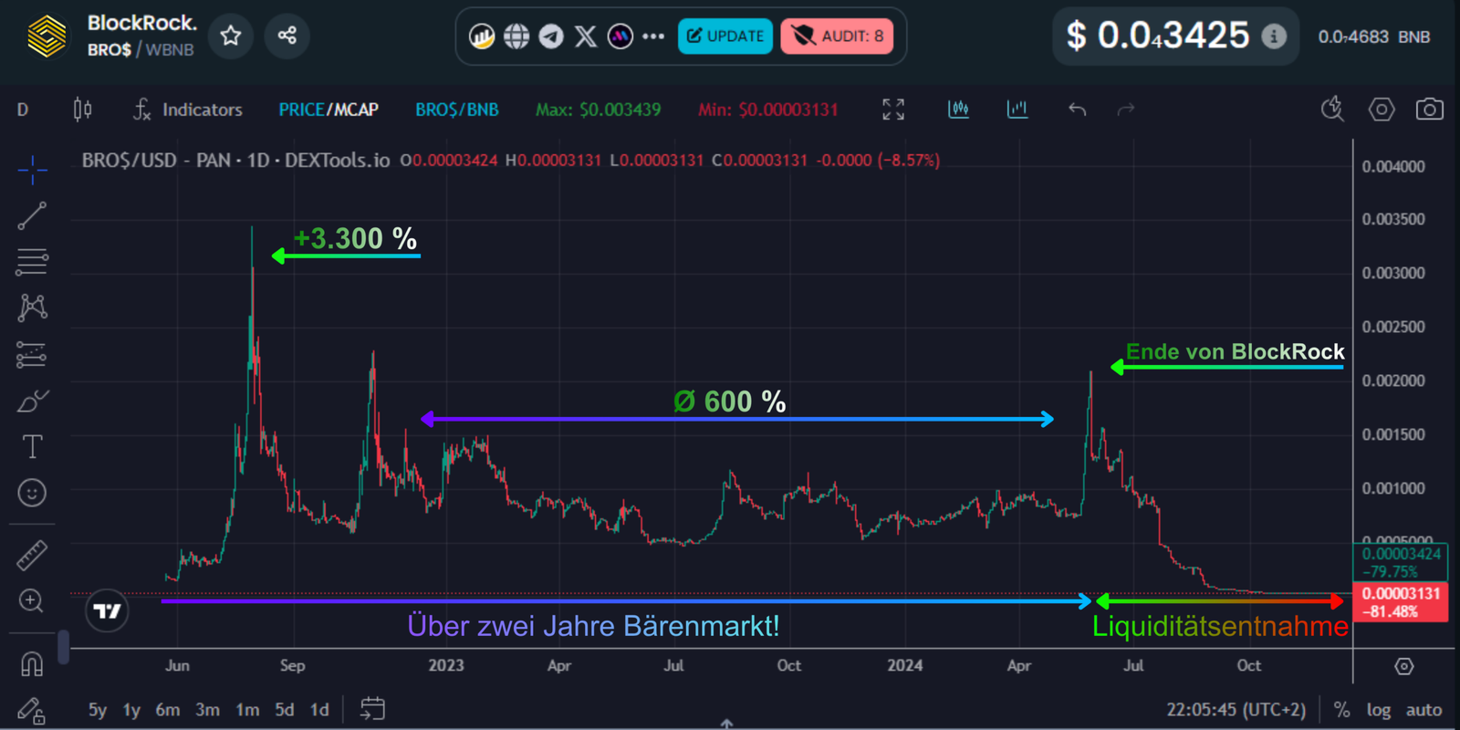 Im Rahmen unseres Vorprojekts BlockRock konnten unter deutlich ungünstigeren Rahmenbedingungen bereits attraktive Renditen erzielt werden. In der besten Phase waren Investoren in der Lage, ihr eingesetztes Kapital zu verdreißigfachen. Im Durchschnitt erzielten Investoren und Mitglieder eine Steigerung ihres investierten Kapitals von rund 600 %.